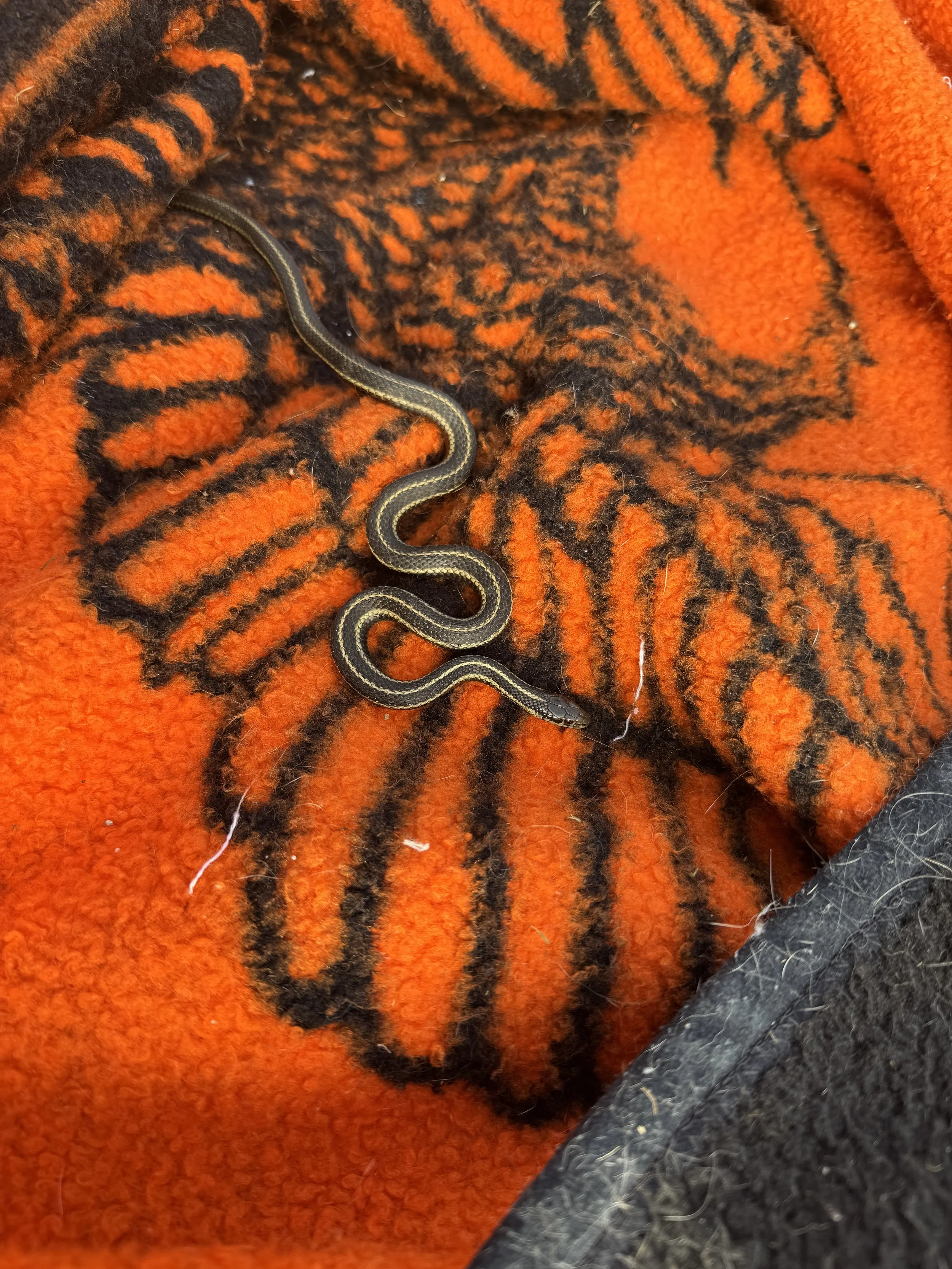 I’m quite the huntress! I found this snake in the garage and knew it wasn’t supposed to be there, so I kept track of it until the lady came and brought it outside. She keeps me safe so I’ll help out.