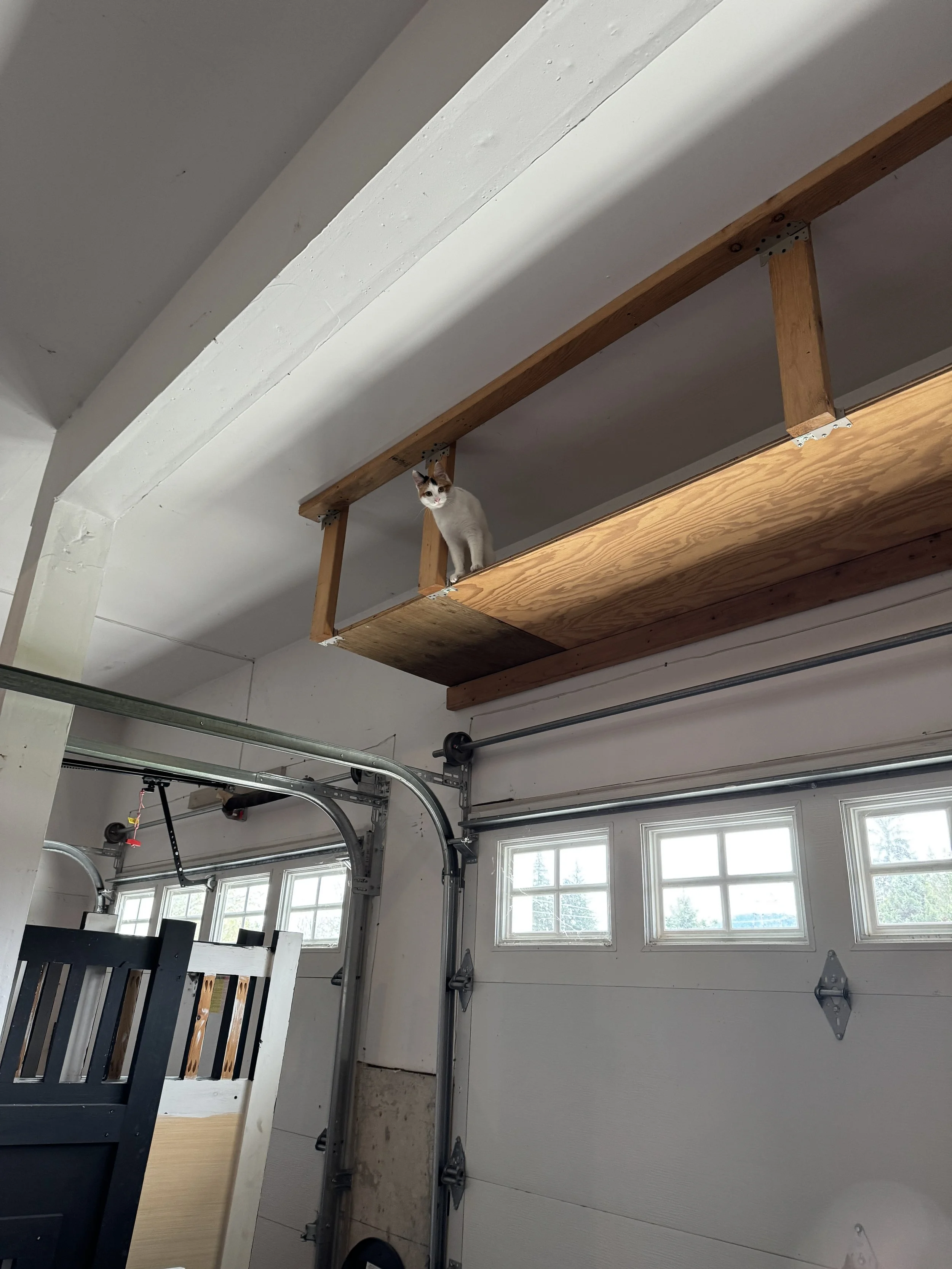 Still hanging out and safe from the elements. I have a few play sessions a day and plenty of exploring in the garage when I’m not napping inside my open & heated cat crate.